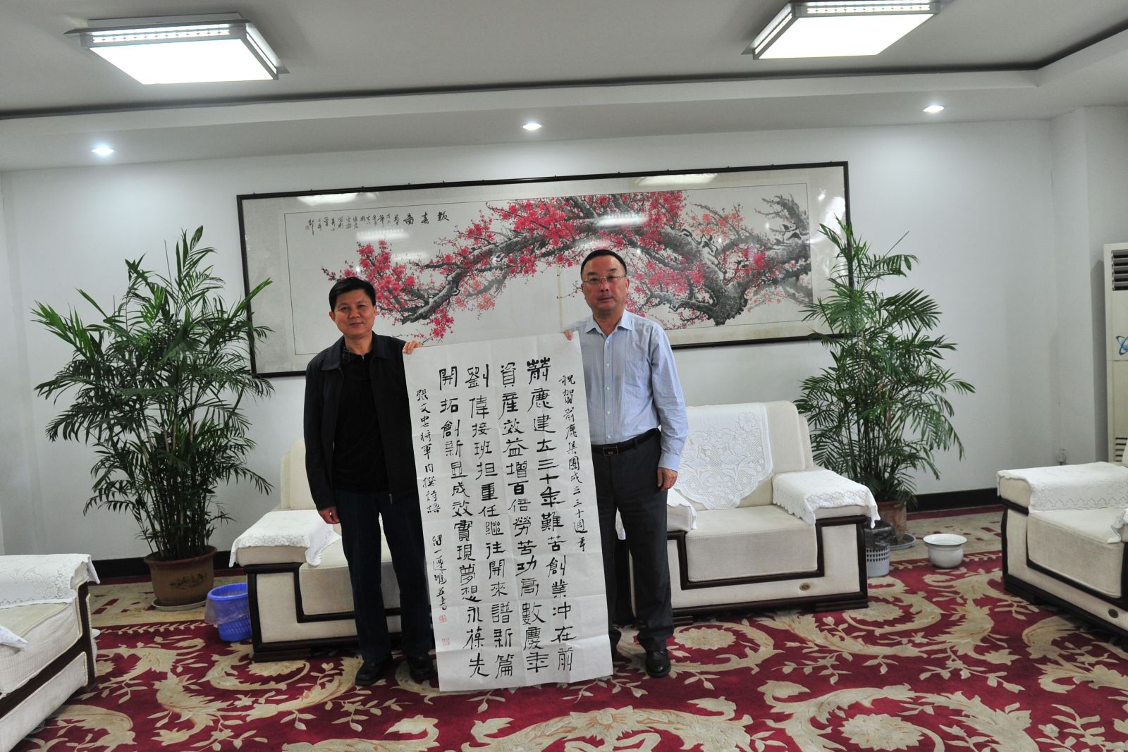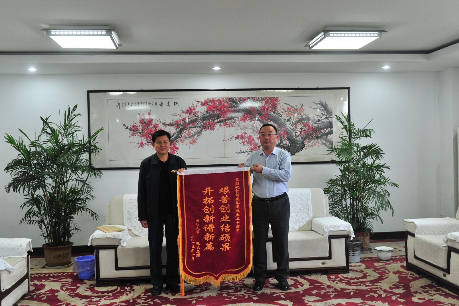國防大學(xué)張文忠老將軍到我集團(tuán)慶祝建廠三十周年并送上錦旗和字畫