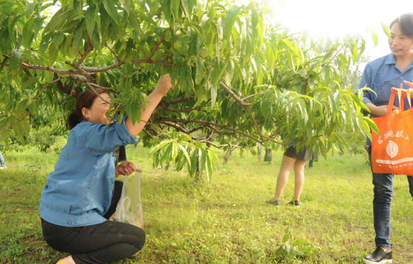 一年一度的摘桃子又開始了,6月6日,集團黨委副書記周娟組織部分職工代表進行摘桃子活動,大家興高采烈的體會豐收的喜悅。