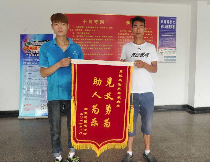 閆懷康救助老人后并沒有聲張,直到今天,老人的兒子毛紅飛特意到箭鹿集團找到了他,向其再三表示感謝,并送來錦旗。大家才得知了閆懷康的高尚行為。