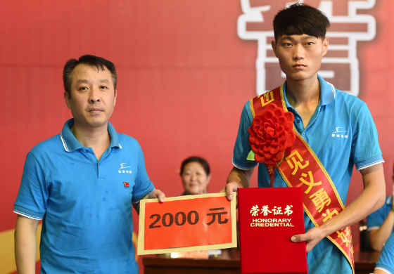 會上,董事長、總經理劉偉對見義勇為好員工閆懷康頒發證書和獎金,集團黨委號召全體員工開展向見義勇為好員工閆懷康進行學習。