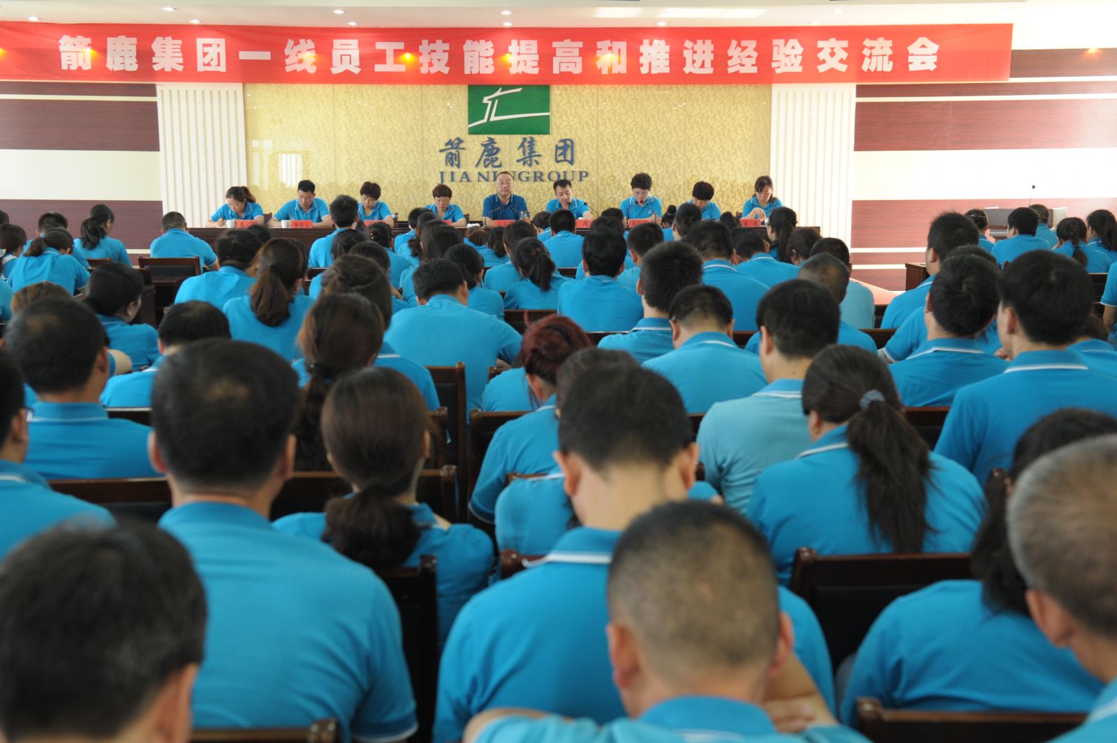 2017年6月15日上午董事長在六樓會議室召開箭鹿集團一線員工技能提高和推進經驗交流會,名譽董事長劉慶年同志出席會議并講話