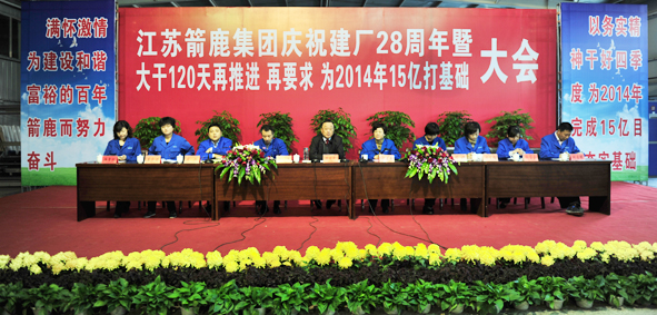 (圖/文:王 力)江蘇箭鹿集團(tuán)建廠28年慶祝大會(huì)近日隆重舉行,會(huì)議總結(jié)28年來箭鹿取得的成績和經(jīng)驗(yàn),并對(duì)沖刺2013年任務(wù),為2014年15億目標(biāo)打基礎(chǔ)進(jìn)行再推進(jìn)、再要求。會(huì)議由黨委書記、董事長劉慶年主持。
